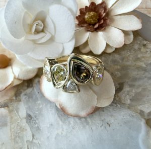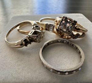 We purchase gold for the scrap value–customers can choose to receive a check for the amount their gold is worth. They also have the option of using the value of their scrap credit towards a custom design incorporating stones they already had into a new piece to cherish.